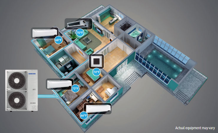 By connecting multiple indoor units to a single outdoor unit, Samsung multi-zone systems provide a flexible, whole home solution, that a conventional system simply can’t rival. Instead of setting one temperature for the entire house, zoning a home with a multi-zone system allows you to control the areas where you spend the most time and turn off other to save energy.